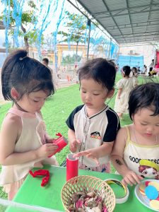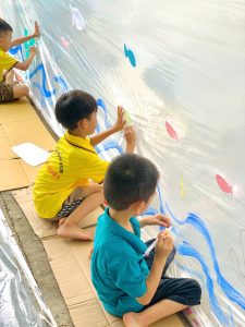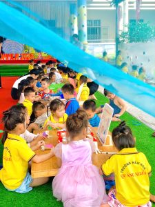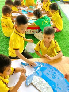 Với buổi trải nghiệm này, các bé được tham gia rất nhiều hoạt động: Được tham quan không gian mô phỏng thế giới đại dương và các bé đã tạo ra đáy biển với nhiều loài sinh vật biển vô cùng phòng phú và đa dạng, những con cá, con sò, con cua,… vô cùng đẹp mắt trong sự sáng tạo và khéo tay của các bé.